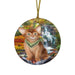 Scenic Waterfall Abyssinian Cat Round Flat Christmas Ornament RFPOR54778