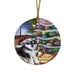 Christmas Happy Holidays Alaskan Malamute Dog with Tree and Presents Round Flat Christmas Ornament RFPOR53790