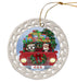 Christmas Honk Honk Red Truck with Santa and Alaskan Malamute Dog Doily Ornament DPOR59317