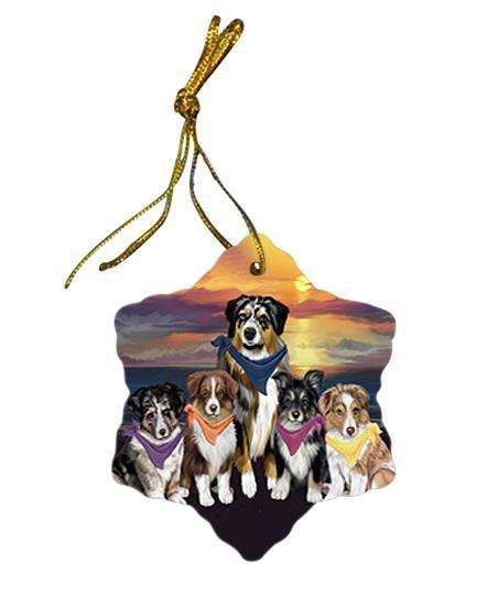 Family Sunset Portrait Australian Shepherds Dog Star Porcelain Ornament SPOR50218