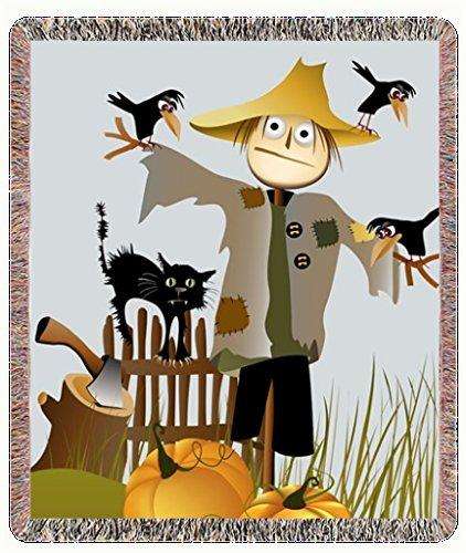 Original price $145.33Original price $145.33 - Original price $145.33Original price $145.33Current price $109.00$109.00 - $109.00Current price $109.00| /Fall Festive Scarecrow w Pumpkins Cat and Crows Woven Throw Blanket 54 X 38