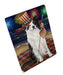 4th of July Independence Day Firework Border Collie Dog Tempered Cutting Board C49863 (Small)