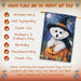 - Design Features: Bichon Frise dog with witch hat, pumpkin, cobweb, and fall leaf accents