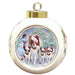 Christmas Running Family Papillon Dogs Round Ball Christmas Ornament RBPOR58261