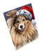 Christmas Shetland Dog Holiday Portrait with Santa Hat Art Portrait Print Woven Throw Sherpa Plush Fleece Blanket