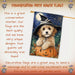Cockapoo Dog Halloween House Flag with Witch Hat and Spider Web Fall Harvest Porch Banner Autumn Farmhouse Outdoor Home Decoration for Dog Mamas and Pet Lovers Double Sided 28 x 40