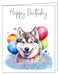 Happy Birthday Greeting Cards Siberian Husky - Cute Note Cards for Dog Lovers - Blank Inside Envelope Included, GCHB00274