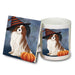 Happy Halloween Papillon Dog Wearing Witch Hat with Pumpkin Mug and Coaster Set MUC54899