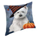 Happy Halloween West Highland White Terrier Dog Wearing Witch Hat with Pumpkin Throw Pillow D234