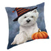 Happy Halloween West Highland White Terrier Dog Wearing Witch Hat with Pumpkin Throw Pillow D236