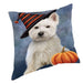 Happy Halloween West Highland White Terrier Dog Wearing Witch Hat with Pumpkin Throw Pillow D238