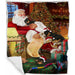 Miniature Pinscher Dog and Puppies Sleeping with Santa Blanket