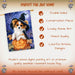 - Adorable Papillon design with witch hat, pumpkins, and bat accents