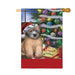 Personalized Christmas Happy Holidays Wheaten Terrier Dog with Tree and Presents Custom House Flag FLG-DOTD-A58739