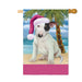Personalized Summertime Happy Holidays Christmas Bull Terrier Dog on Tropical Island Beach Custom House Flag FLG-DOTD-A60494