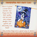 Welcome Halloween in style with this Pitbull Pumpkin Witch Hat House Flag. Featuring a happy Pitbull surrounded by pumpkins, bats, and spider webs beneath a glowing autumn sky, this festive flag adds a touch of playful charm and seasonal color to your porch, balcony, or front entryway.