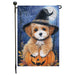 Poodle Dog Outdoor Halloween Garden Flag Witch Hat Pumpkin Fall Yard Decoration Jack O Lantern Spider Web Holiday Party Decor Single or Double Sided 12.5 x 18 Inch