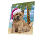 Summertime Happy Holidays Christmas Cairn Terrier Dog on Tropical Island Beach Tempered Cutting Board