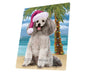 Summertime Happy Holidays Christmas Poodle Grey Dog on Tropical Island Beach Large Refrigerator / Dishwasher Magnet D192