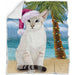 Summertime Happy Holidays Christmas Siamese Blue Cat on Tropical Island Beach Blanket D180