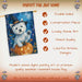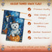 • Features Westie dog, witch hat, pumpkin, spider web, and full moon Halloween artwork