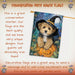 Light up your porch this spooky season with this charming Yorkipoo Halloween house flag featuring an adorable puppy under a glowing moon with pumpkins and festive autumn details. This large outdoor Halloween banner adds warmth, whimsy, and seasonal cheer to your porch, patio, or yard — perfect for dog lovers and fall decorators alike.