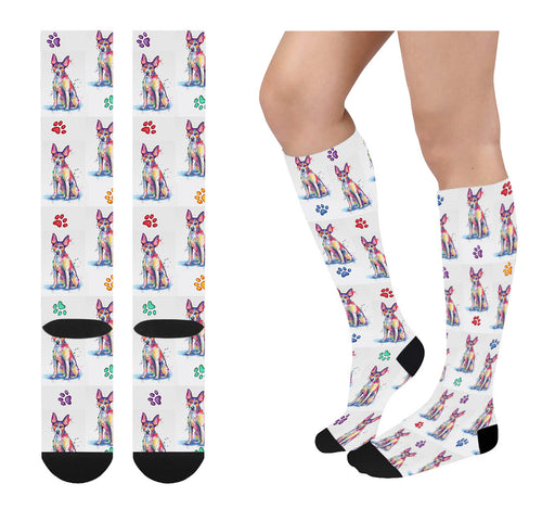 Original price $22.99 - Original price $22.99Original price$22.99$22.99 - $22.99Current price $22.99| /Watercolor Rat Terrier Dogs Women's Over the Calf Socks