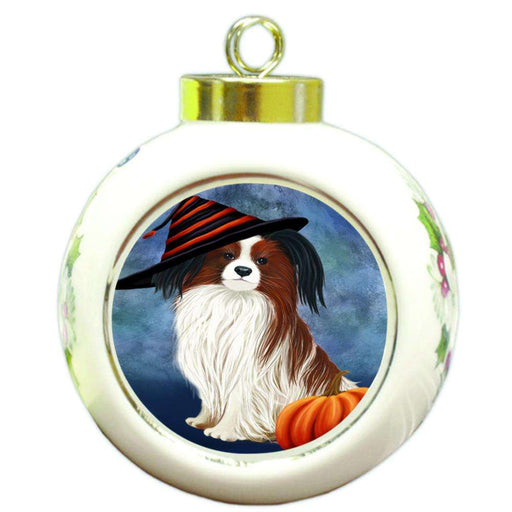 Original price $38.84Original price $38.84 - Original price $38.84Original price $38.84Current price $34.99$34.99 - $34.99Current price $34.99| /Happy Halloween Papillon Dog Wearing Witch Hat with Pumpkin Round Flat Christmas Ornament RFPOR55026