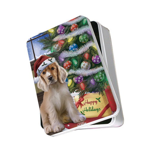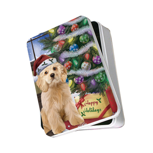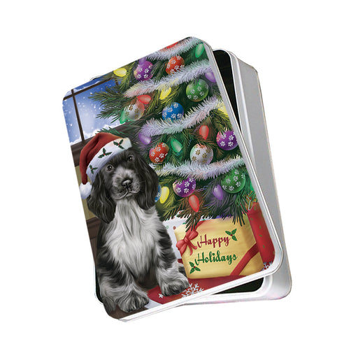Original price $29.99 - Original price $29.99Original price$29.99$29.99 - $29.99Current price $29.99| /Christmas Happy Holidays Cocker Spaniel Dog with Tree and Presents Photo Storage Tin PITN53455