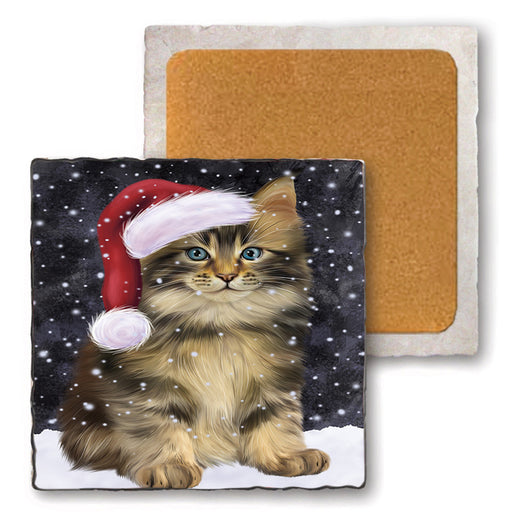 Original price $34.99 - Original price $34.99Original price $34.99$34.99$34.99 - $34.99Current price $34.99| /Let it Snow Christmas Holiday Maine Coon Cat Wearing Santa Hat Set of 4 Natural Stone Marble Tile Coasters MCST49311
