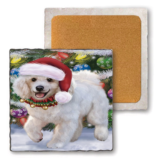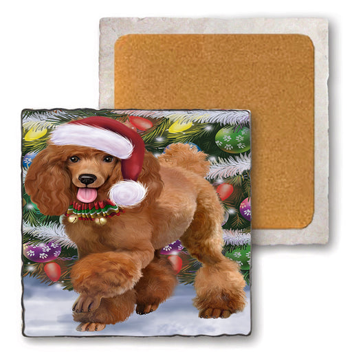 Original price $34.99 - Original price $34.99Original price $34.99$34.99$34.99 - $34.99Current price $34.99| /Trotting in the Snow Poodle Dog Set of 4 Natural Stone Marble Tile Coasters MCST50453