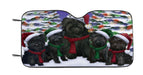 Affenpinscher Dogs Christmas Family Portrait in Holiday Scenic Background Car Sun Shade