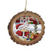 You will be sure to spread Holiday cheer this year when you display your round wooden shaped ornament and it will be a unique addition to your tree!