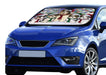 Biewer Terrier Dogs Christmas Family Portrait in Holiday Scenic Background Car Sun Shade