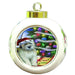 Christmas Happy Holidays Wheaten Terrier Dog with Tree and Presents Round Ball Christmas Ornament RBPOR53477