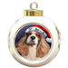 Christmas Holidays Cocker Spaniel Dog Wearing Santa Hat Portrait Head Round Ball Christmas Ornament RBPOR53495
