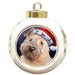 Christmas Holidays Wheaten Terrier Dog Wearing Santa Hat Portrait Head Round Ball Christmas Ornament RBPOR53507