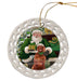 - Ceramic Ornament is flat and measures 3" in diameter