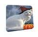 Happy Halloween Albino Cat Wearing Witch Hat with Pumpkin Coasters Set of 4 CST54741