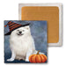 Happy Halloween American Eskimo Dog Wearing Witch Hat with Pumpkin Set of 4 Natural Stone Marble Tile Coasters MCST49915
