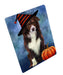 Happy Halloween Border Collie Dog Wearing Witch Hat with Pumpkin Large Refrigerator / Dishwasher Magnet RMAG90606