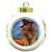 Happy Halloween Cocker Spaniel Dog Wearing Witch Hat with Pumpkin Round Ball Christmas Ornament RBPOR54960