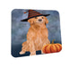 Happy Halloween Golden Retriever Dog Wearing Witch Hat with Pumpkin Coasters Set of 4 CST54917