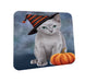 Happy Halloween Russian Blue Cat Wearing Witch Hat with Pumpkin Coasters Set of 4 CST54699