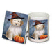 Happy Halloween Tibetan Terrier Dog Wearing Witch Hat with Pumpkin Mug and Coaster Set MUC54739