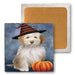 Happy Halloween Tibetan Terrier Dog Wearing Witch Hat with Pumpkin Set of 4 Natural Stone Marble Tile Coasters MCST49747