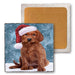 Let it Snow Christmas Holiday Irish Setter Dog Wearing Santa Hat Set of 4 Natural Stone Marble Tile Coasters MCST49304