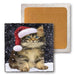 Let it Snow Christmas Holiday Maine Coon Cat Wearing Santa Hat Set of 4 Natural Stone Marble Tile Coasters MCST49309