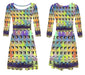 Paradise Wave Border Collie Dogs 3/4 Sleeve Sundress