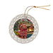 - Ceramic Ornament is flat and measures 3" in diameter